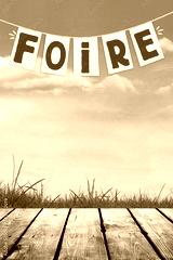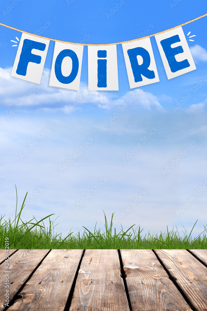 Banderole Foire, arrière plan nature et ciel bleu, avec espace pour du texte