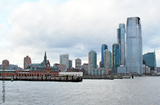 New york, USA - 20.12.2019: New York, Manhattan skyscrapers skyline behind across Hudson river at end of day New York, USA - stock photo