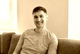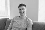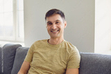 Businessman in casual t-shirt serious looking at the camera at home in the office
