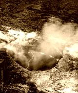 Aerial shot of Kilauea crater in Volcano National Park in Hawaii