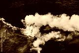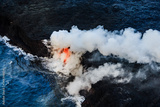 Hot lava falls into the Pacific Ocean causing explosions and gases to rise