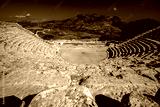 Stone Seating in Segesta Greek style ancient theatre in Sicily,
