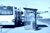 transportation and urban concept - empty bus stop on street of Tallinn city