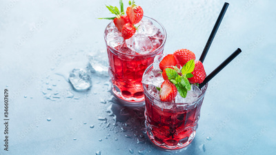 Red cocktail with ice and mint