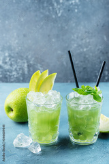Green cocktail with ice and mint