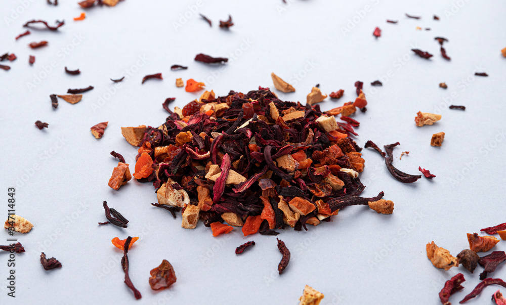 Fruit tea leaves isolated on white background