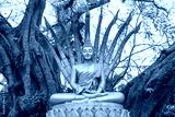 The Buddha statue in Laos style posture with snake who protected the Buddha from the elements after his enlightenment settlement under the Bodhi tree in Luang Prabang, Laos.