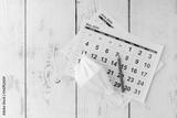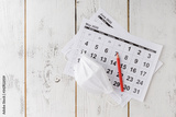 Protective medical mask on the calendar sheets. The concept of quarantine. Selective focus