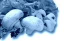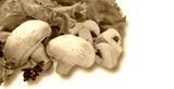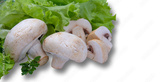 fresh mushrooms on a green lettuce leaf, white insulated background