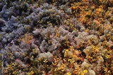 Gray Lichen Cladonia rangiferina or Reindeer grey lichen on yellow sunlight. Beautiful forest moss background