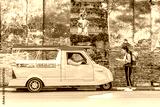 Traveler japanese girl hollding map travel query for the way with old man driver taxi or tuk tuk touring.