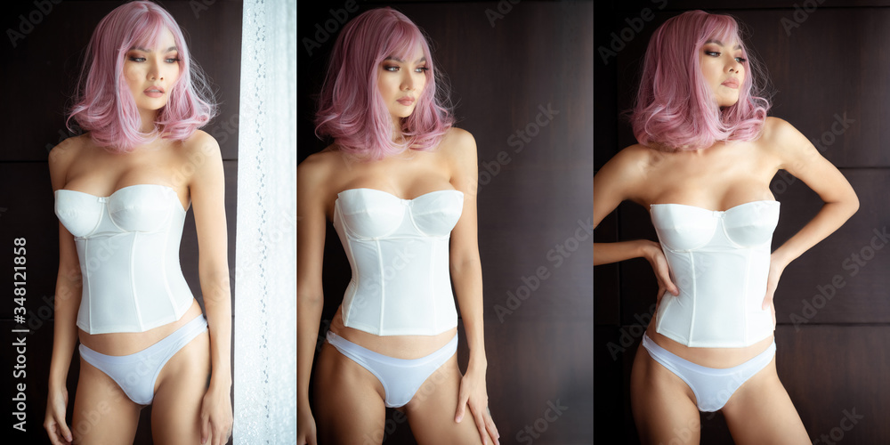 Portrait of beautiful asian sexy girl with short hair using as background woman sexy beauty fashion people model concept.