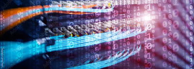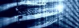 Digital Binare Code on Data Center Background. Technology Panoramic Wallpaper for your Business.