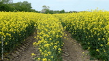 Gold yellow flowering rapeseed field.(brassica napus) Canola blossom in spring in Schleswig-Holstein, Germany