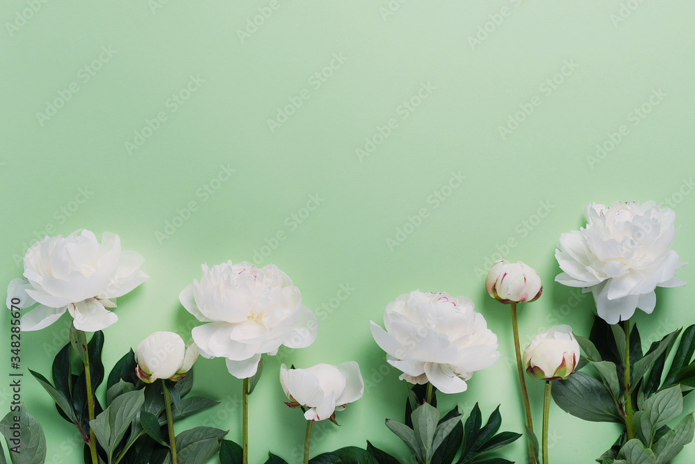White elegant peony on the green background