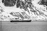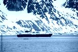 Expedition ship in Arctic sea, Svalbard. Passenger cruise vessel. Arctic and Antarctic cruise.