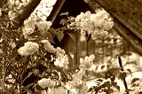 fragrant white curly lilak flower at springtime on old rural garden