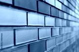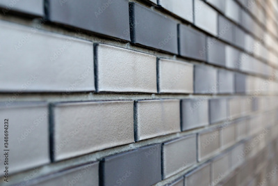 Silver-gray wall made of ceramic facing hollow bricks. Diminishing Perspective. Image for construction and architectural design.