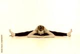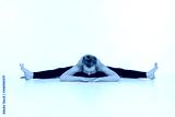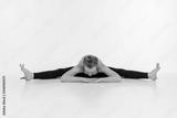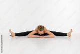 Sporty attractive young woman doing yoga practice on white background. Upavistha Konasana.