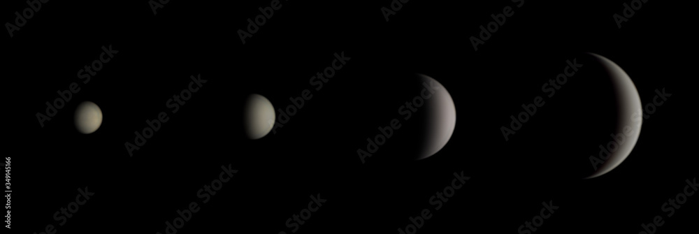 The changing apparent size and phase of illumination of the planet Venus photographed between November 2019 and Mai 2020 with a Maksutov telescope from Mannheim in Germany.