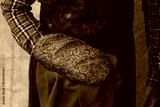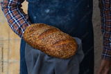 Fresh loaf of homemade rye bread in man hands