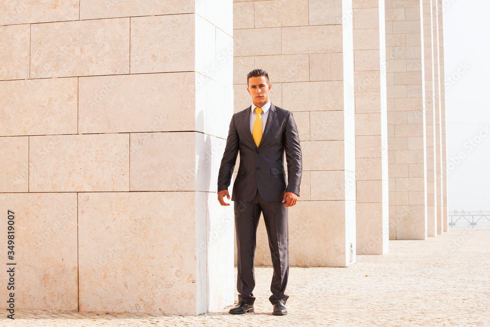 Businessman next to some wall