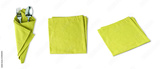 collection of green napkin linen, fork and spoon ,serviette isolated on white background with clipping path.