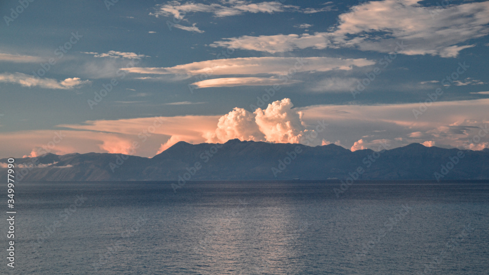 Greece coast, mediterranean sea view from the island Corfu.