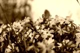 Close-up of flowers Phlox subulata on the lawn near a white plastic fence in a typical cottage village. The concept of landscaping, landscaping.
