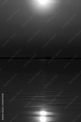 White light on the black water | moonlight on water surface | sea ocean reflection | black and white photography | vertical orientation | shadow and light