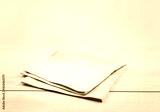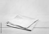 Soft beige folded kitchen towel on wooden table empty copy space.Food advertisement backdrop.