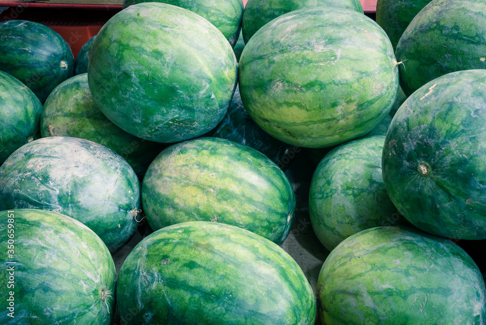 Abundance pile of fresh watermelons at fruit stand in Geylang, Singapore