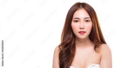 Portrait beautiful Asian girl has clean fresh skin. Asia young woman has beauty facial skin, beauty skin body. Cosmetology, beauty, Spa, skin care concept, isolated on white background, copy space