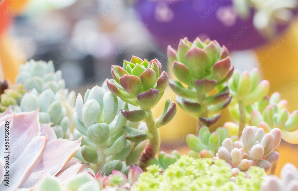 Macro close-up of dense succulents in outdoor garden