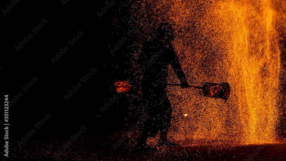 Stunning flaming fire show performance