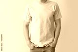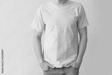 Man in stylish t-shirt on grey background