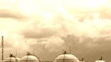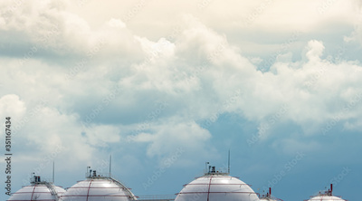 Industrial gas storage tank. LNG or liquefied natural gas storage tank. Spherical gas tank in petroleum refinery. Above-ground storage tank. Natural gas storage industry and global market consumption