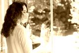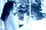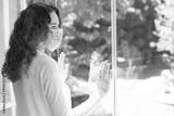 Young woman in isolation at home near window