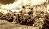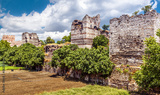 Walls of Constantinople in Fatih district of Istanbul, Turkey. Ancient Walls of Constantinople are tourist attraction in Istanbul.