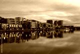 Cloudy dawn view of building skyline at Wentworth Point, Sydney, Australia.