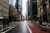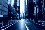 New York street. Manhattan downtown street. Empty streets of NYC. Rainy city. Sky rise buildings. Brown brick skyscrapers of New York City.