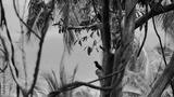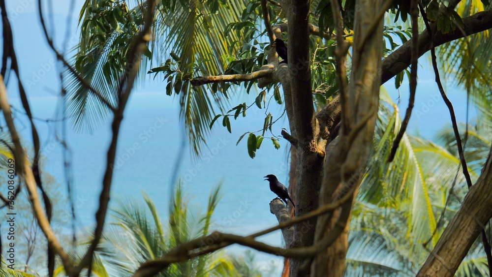 Beautiful Greater Racket Tailed Drongo is perching on branch in wild nature of Thailand
