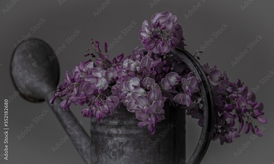 The flowers in the watering can