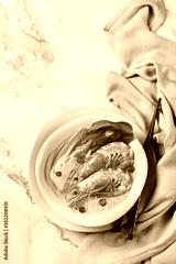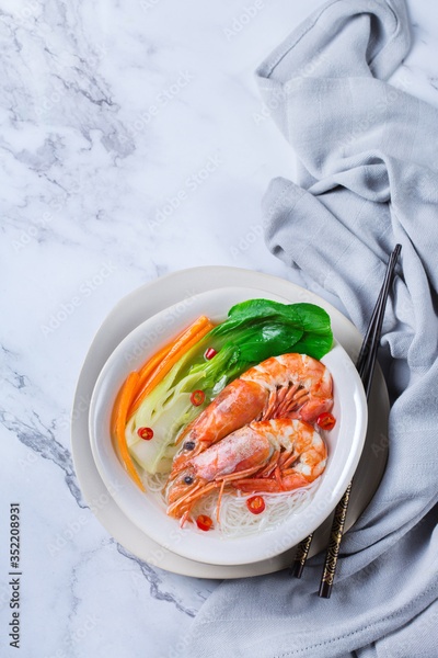 Asian bee hoon, bihun soup with shrimp, prawn, rice noodles