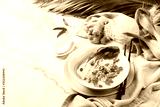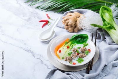 Asian bee hoon, bihun soup with pork balls, rice noodles