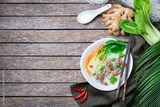 Asian bee hoon, bihun soup with pork balls, rice noodles