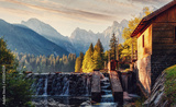 Wonderful nature Landscape. Fantastic sunset scene in Alp mountains. popular travel location, Alpine lake with majestic peak on background under sunlit. Amazing colorful Scenery. Beauty of World.