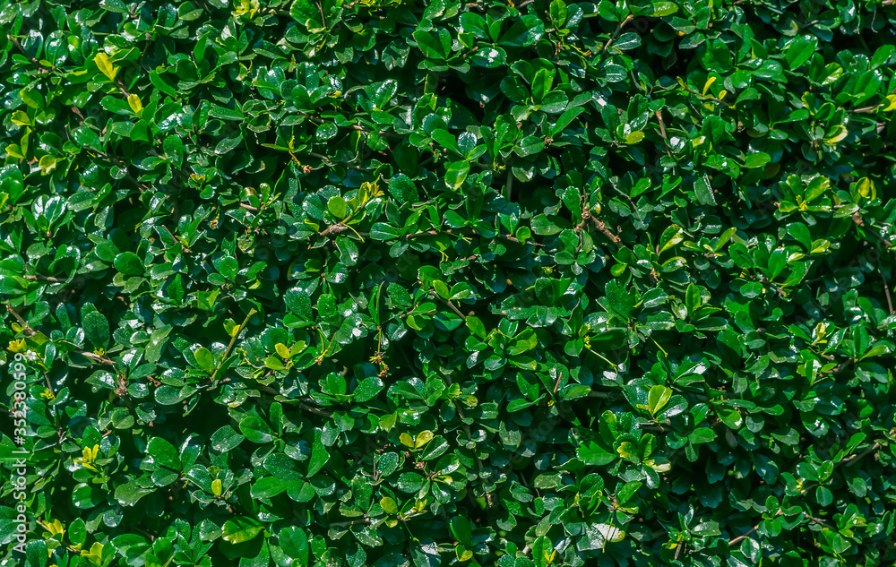 Natural green leaves wall texture background, nature greenery floral wallpaper tropical jungle pattern ecology green environment concept
