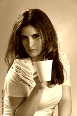 Woman drinking a hot drink