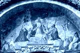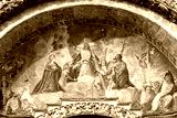 St Mark`s Basilica close-up, Venice, Italy. It is top landmark in Venice. Beautiful luxury mosaic portal, image of Christ and cross.